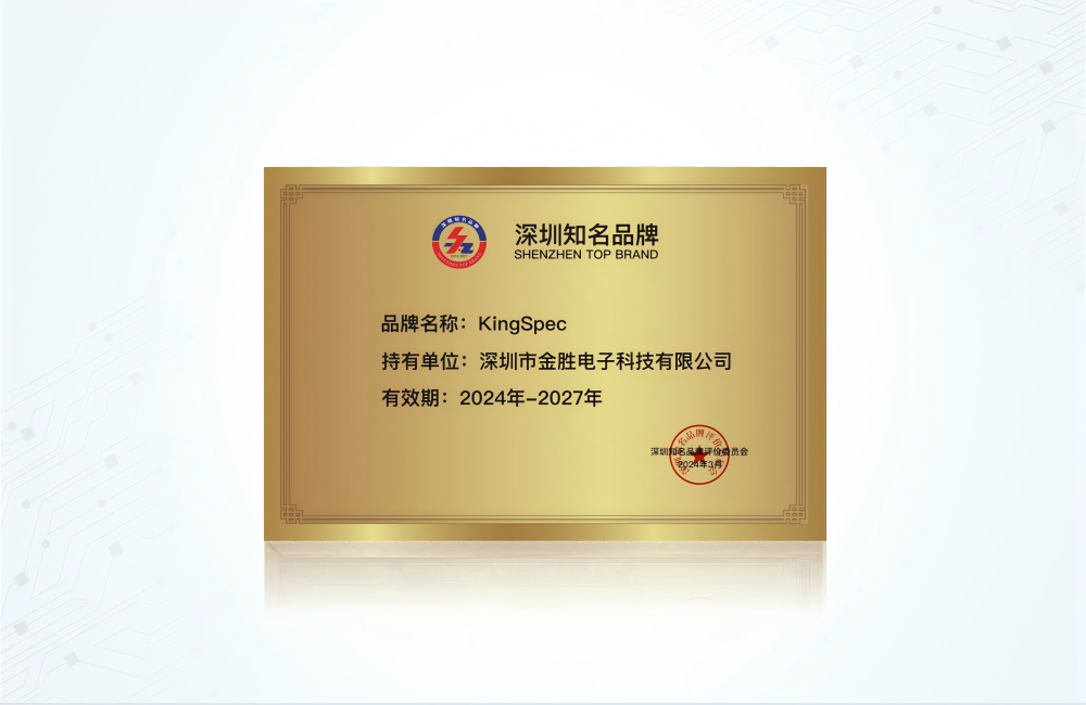 “KingSpec”榮獲第二十一屆“深圳知名品牌”稱號及“灣區知名品牌”